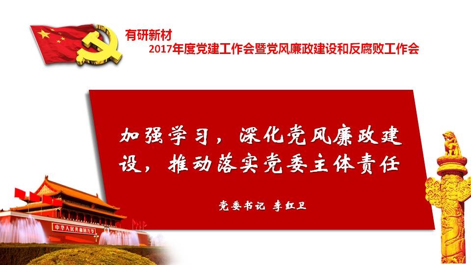 2017年是有研新材發展中非常關鍵的一年。李紅衛書記提出今年黨建工作的重點任務是:認真學習習總書記系列講話精神,全面深入貫穿中央精神,促進新材黨委主體責任落實;加強新材干部管理,促進干部廉潔自律和積極作為、敢于擔當的風氣的形成和固化;全面完成2016年巡視、審計問題的整改;充分發揮群團組織作用,凝聚新材人心,促進形成積極健康的企業文化。