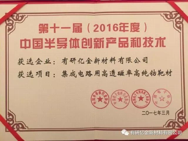 會上有研億金新材料有限公司的高純鈷靶材獲得第十一屆中國半導體創新產品和技術獎,該款產品如半導體靶材制造領域皇冠上的明珠,摘取來之不易。