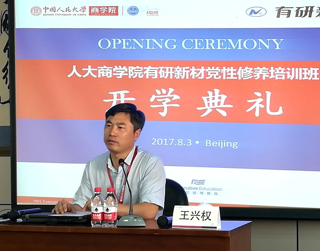 有研新材黨委書記、總經(jīng)理王興權(quán)同志在培訓班開學典禮上致辭,他指出此次培訓班將邀請數(shù)位相關(guān)領(lǐng)域知名專家,重點圍繞當前宏觀經(jīng)濟形勢、國企改革、黨的歷史和使命、作風和廉政建設、企業(yè)戰(zhàn)略管理、領(lǐng)導力等方面進行授課,進一步加強對黨政策的理解、提升黨性修養(yǎng),深入了解宏觀經(jīng)濟環(huán)境、明晰國企改革方向,加強人員間交流、增進彼此了解;全面提高領(lǐng)導干部企業(yè)管理能力,為有效推進落實新材“十三五”發(fā)展戰(zhàn)略提供保障。