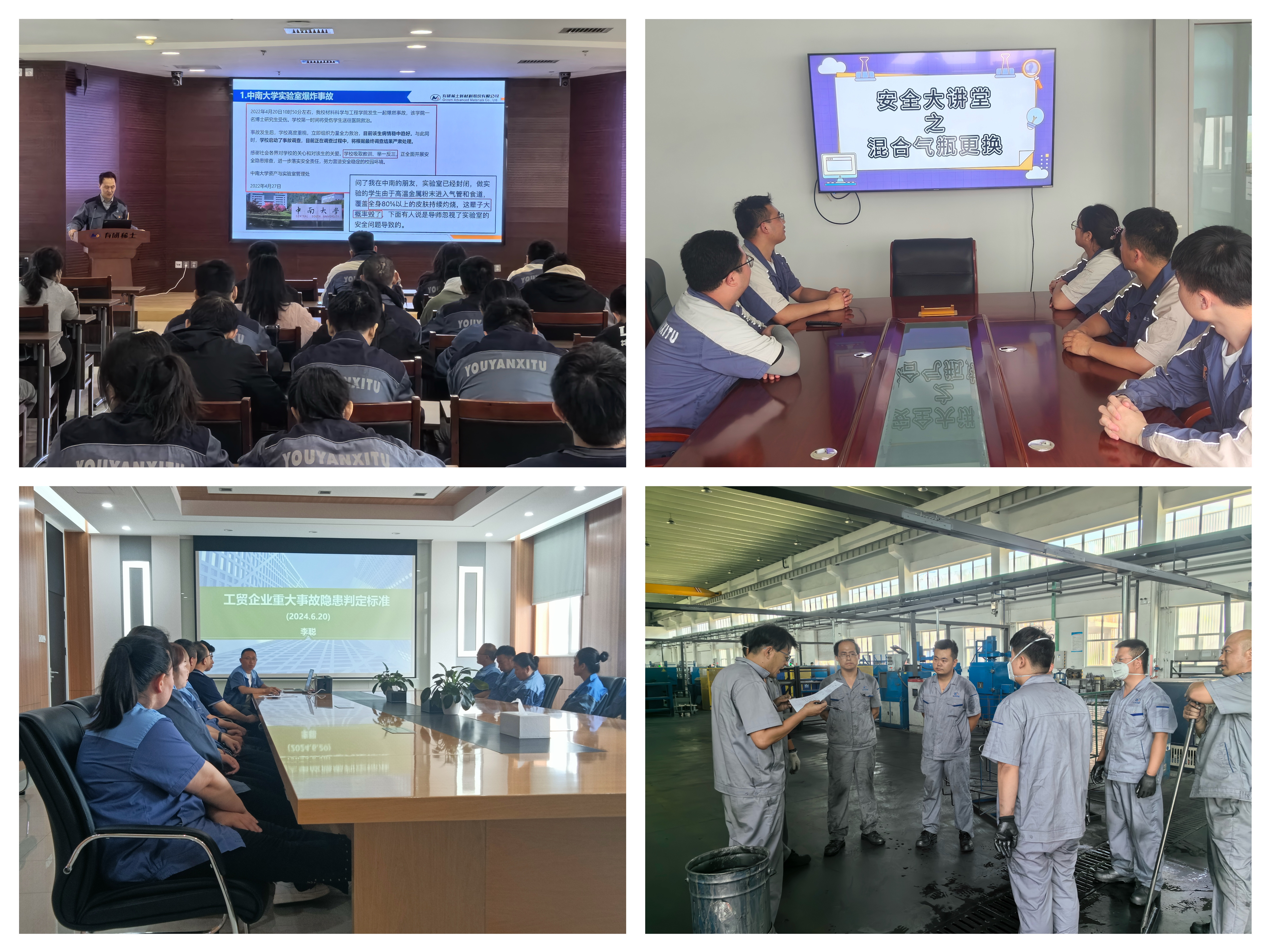 各子公司員工主動參與,開展了內容豐富的安全大講堂活動,內容涉及重大隱患判定、粉塵防爆、職業健康等專題。有研稀土緊抓四新活動和實驗室安全管理,開展研發及實驗室安全管理培訓;有研醫療緊盯全員安全意識和隱患排查能力提升,開展消防安全和重大事故隱患判定標準培訓;山東國晶輝圍繞制度規程執行、消防安全和危化品安全管理,開展大講堂活動。有研稀土和山東有研國晶輝錄制的《涉爆粉塵安全》、《氟化氫安全》和《有毒氣體泄漏專項演練》視頻入選集團安全月避險逃生演練科普視頻展播。?