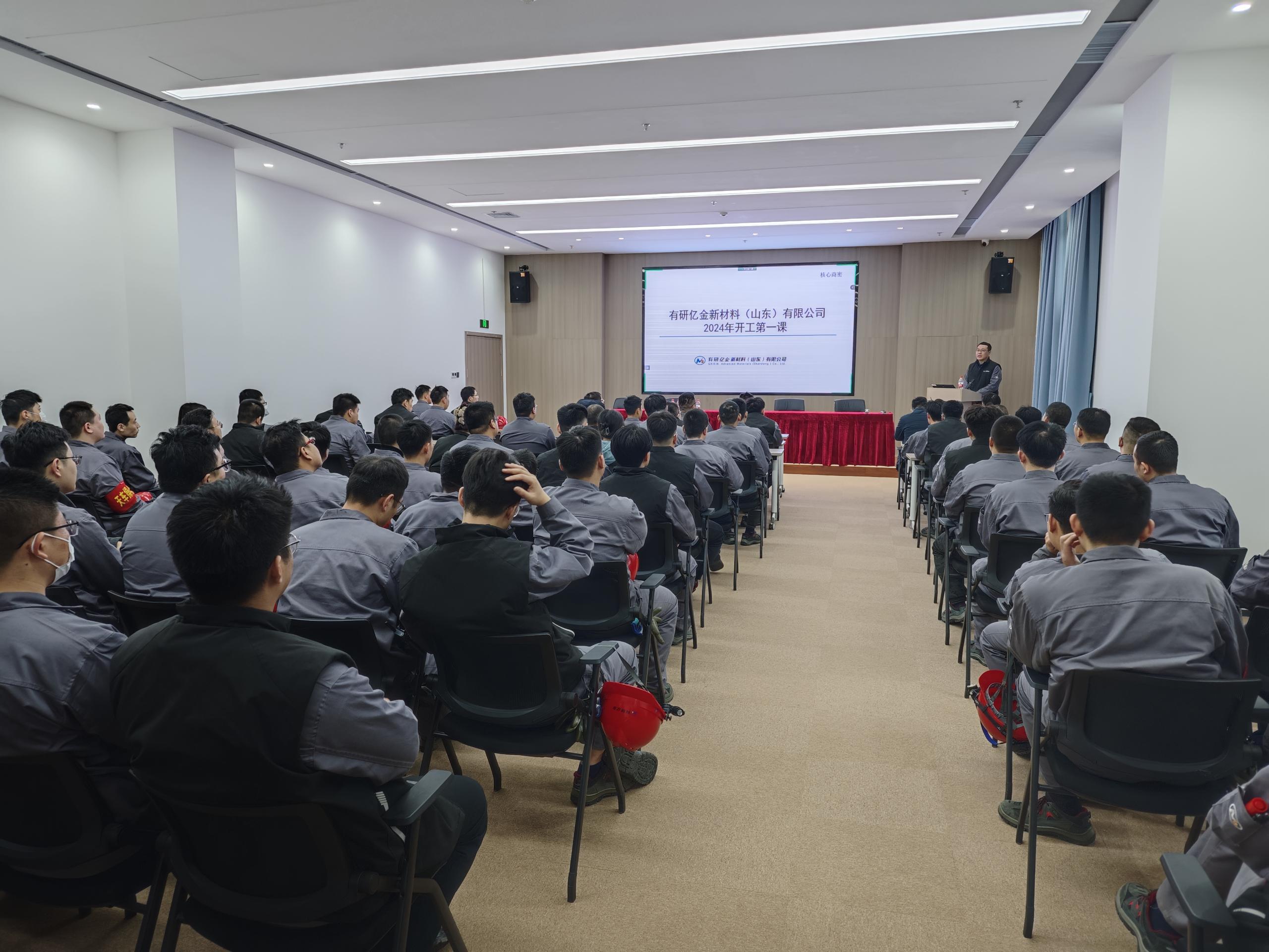 有研國晶輝總經理曹波以“人人講安全,個個會應急-暢通生命通道”為主題講授了安全公開課,有研億金(山東)總經理滕海濤講授了“開工第一課”。