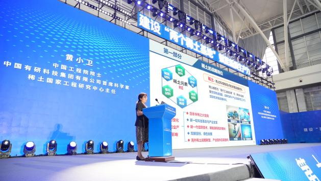 8日下午,院士行主題報告會在包頭國際會展中心舉行,中國稀土行業協會副會長兼秘書長楊文浩擔任主持人。中國有研集團首席科學家、稀土國家工程研究中心主任黃小衛院士,哈爾濱理工大學蔡蔚教授、沈陽工業大學張鳳閣教授、中國中車集團首席技術專家晏才松、有研稀土總經理劉榮輝、中國北方稀土總經理瞿業棟等專家學者分別作了“稀土關鍵材料體系自立自強戰略研究進展”“新能源汽車電驅動與供應鏈融合發展” “新型稀土永磁電機及其控制”“工業裝備綠色低碳驅動技術解決方案”“稀土光功能材料發展現狀及前景”和“稀土永磁材料保障供應”等主旨演講,為包頭稀土產業轉型升級、高質量發展建言獻策。