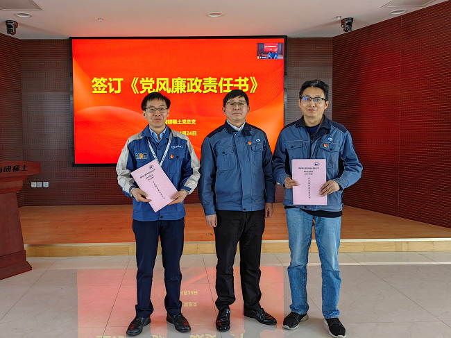 許國棟傳達了中國有研2023年黨建暨黨風廉政建設和反腐敗工作會精神,并以中央紀委國家監委通報的違反中央八項規定精神的典型案例為鑒,進行了廉潔談話和“五一”節、端午節前有關提醒。他強調,要持之以恒地加強黨建和黨風廉政建設工作,發揚斗爭精神、敢于自我革命,以高質量黨建和黨風廉政建設新成效推進有研稀土實現高質量發展。