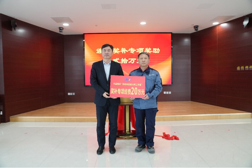 王興權為技能大師工作室頒發獎補專項獎勵。