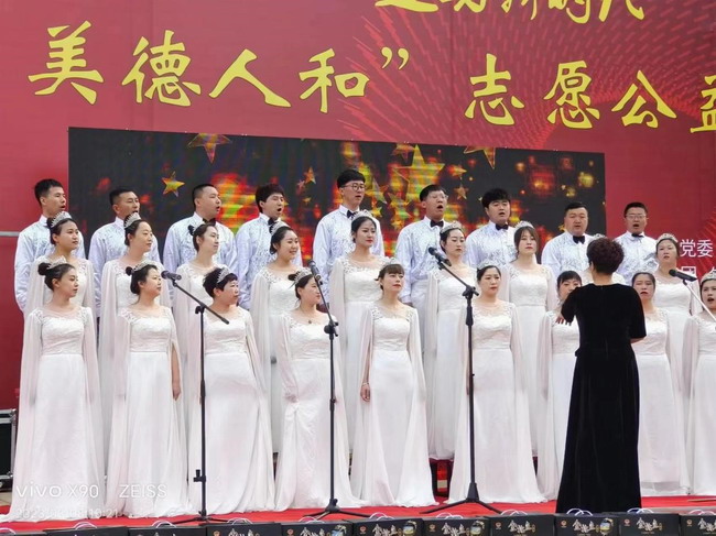 “學(xué)習(xí)雷鋒好榜樣,忠于革命忠于黨……”高亢的歌聲拉開了“政通人和,美德人和”志愿公益典禮的帷幕。為弘揚(yáng)雷鋒精神,傳承志愿服務(wù)美德,榮成市人和鎮(zhèn)黨委借助“三八”國際勞動(dòng)?jì)D女節(jié)這一契機(jī),于3月8日上午在靖海集團(tuán)康馨社區(qū)廣場舉行典禮,向在場的婦女同志表達(dá)了節(jié)日祝愿的同時(shí)也為多家企業(yè)、志愿者頒發(fā)了榮譽(yù)獎(jiǎng)項(xiàng)。現(xiàn)場參加典禮的有來自人和鎮(zhèn)各社區(qū)的志愿者,來自企業(yè)、農(nóng)村各工作片的21支合唱隊(duì)等近2000人。