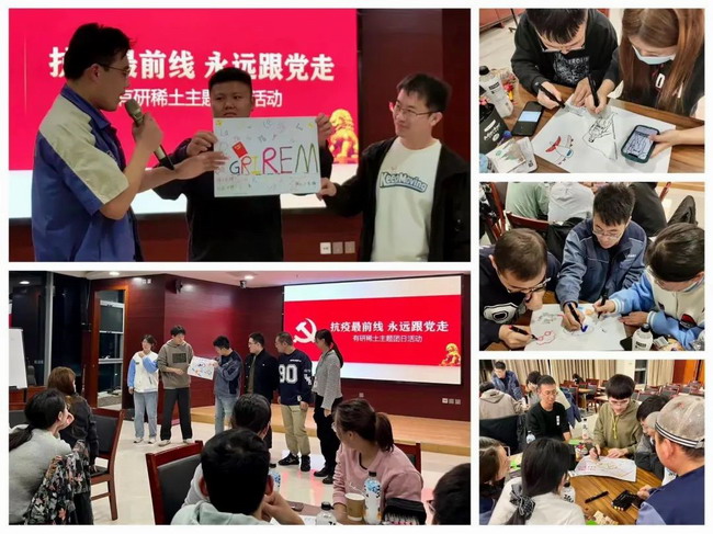隨后,團隊積分賽拉開帷幕,涉及黨建知識搶答、我心中的有研稀土-繪畫海報、蒙眼畫線、你劃我猜四個環節。比賽共有五支隊伍參加,分別為“紅旗下的有研人隊”“稀土小先鋒隊”“做核酸要排隊”“元氣森林隊”“卡你脖子隊”。