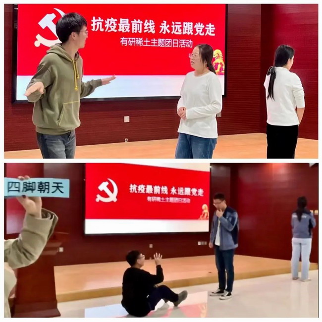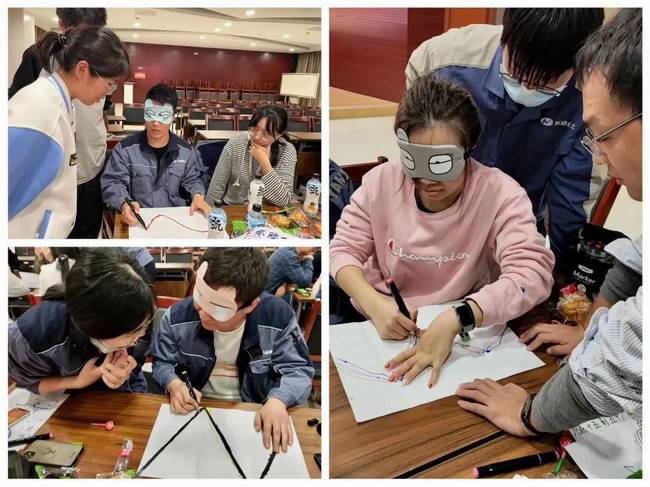 在“我心中的有研稀土-繪畫海報”中,各隊積極合作,共同配合完成了自己的作品,全組上前展示作品,并大聲喊出自己的隊伍口號。“蒙眼畫線”考驗團隊默契,一人蒙眼,手執畫筆,其他隊友觀察圖形,用語言引導蒙眼者畫出一條與原曲線相重合的線條。在“你劃我猜”中,北京、熊貓、紅領巾、摩托車、有研稀土、回眸一笑……如何表演才能讓隊友準確猜出這個詞語呢?各位團員青年使出了渾身解數,盡情展現自我。這些活動不僅把大家聯結得更加緊密,而且展現了有研稀土團員青年的團結性、凝聚力與滿腔熱血。