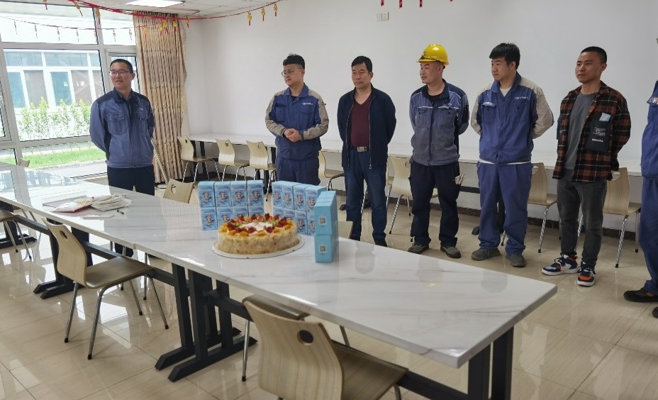 為表達公司對職工的關心關懷,對職工長期以來辛勤工作表示肯定,使職工感受到有研稀土大家庭的溫暖,?4月28日,有研稀土在燕郊基地職工食堂舉辦了一場別開生面的集體生日會。有研稀土黨總支委員、副總經理王志強出席活動,駐廠四月份過生日的職工20余人參加活動。因為疫情原因,部分職工不能和家人團聚過生日,公司在廠區為他們舉辦集體生日,職工們感到既興奮又驚喜。