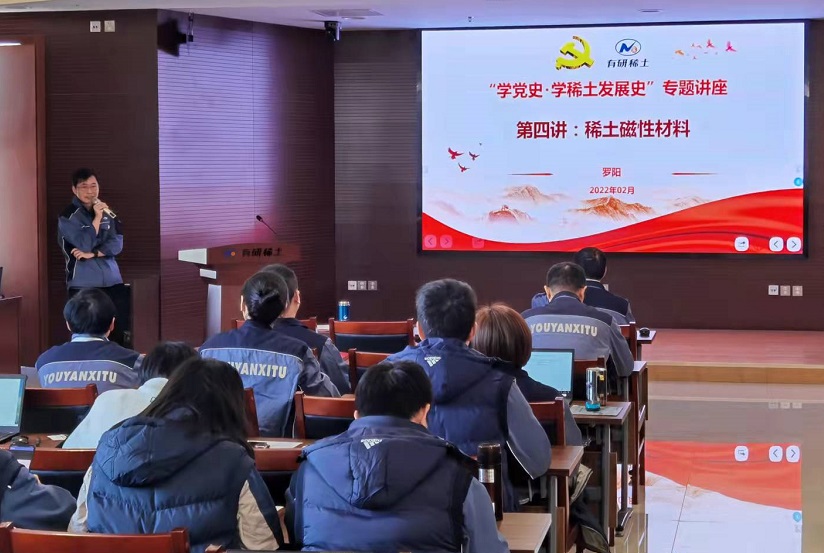 2月21日,有研稀土黨總支舉辦“學黨史·學稀土發展史”系列講座第四講,磁性材料事業部總經理羅陽教授以《稀土磁性材料》為題做專題報告,講座由黨總支副書記、副總經理許國棟主持。