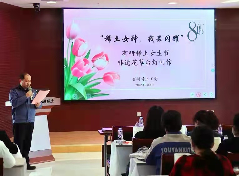 陽(yáng)春三月,桃花盛開,在這溫暖明媚的日子里,為了慶祝第112個(gè)國(guó)際三八婦女節(jié),有研稀土工會(huì)于3月8日在燕郊基地舉辦“稀土女神,我最閃耀”非遺花草臺(tái)燈制作活動(dòng)。公司黨總支書記、總經(jīng)理于敦波,公司黨總支副書記、工會(huì)主席許國(guó)棟出席活動(dòng),公司工會(huì)女工委員趙娜主持活動(dòng)。在燕郊基地工作的女同胞參加了本次活動(dòng),