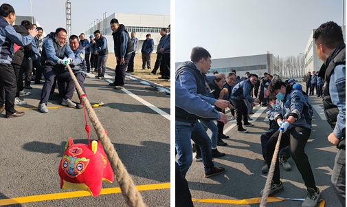 “1、2加油,1、2加油……”,大年初十中午的陽光溫暖明媚,有研稀土燕郊基地內人頭攢動,吶喊助威聲此起彼伏,2022年新春“虎虎生威”拔河比賽正在這里隆重舉行。