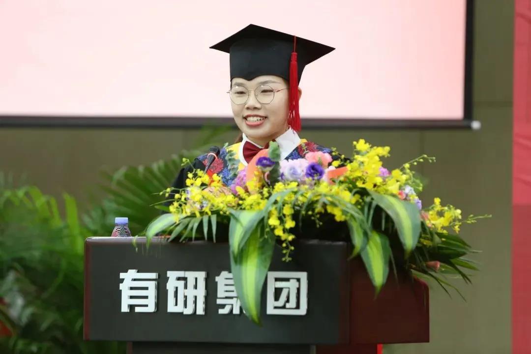 稀土中心培養的高彤宇、田俊行和陳士磊等博士研究生,柯靈升和張曉偉等碩士研究生參加了畢業典禮。其中,高彤宇榮獲北京市優秀畢業生、一等院長獎學金、院優秀畢業生和院優秀博士論文;田俊行榮獲三等院長獎學金和院優秀畢業生;柯靈升榮獲院優秀碩士論文。高彤宇代表全體畢業生發言,她分享了在有研總院的成長經歷,代表畢業生對有研總院的悉心培養表達了感謝。她代表畢業生莊嚴承諾,將秉承有研人胸懷國家的初心和艱苦奮斗的品質,在新的人生階段,用行動和奮斗書寫無愧于有研人的華美篇章。