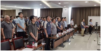 隨后,大會(huì)進(jìn)行第二項(xiàng),重溫入黨誓詞,黨總支組織委員王志強(qiáng)帶領(lǐng)全體黨員面向黨旗,高舉右拳,莊嚴(yán)宣誓,重溫入黨誓詞,大家神情莊重、聲音鏗鏘。與會(huì)黨員紛紛表示,通過(guò)重溫入黨誓詞,深刻領(lǐng)悟作為一名共產(chǎn)黨員的責(zé)任感和使命感。在今后工作生活中,會(huì)不斷提高自身修養(yǎng),牢記自己的莊嚴(yán)承諾,以實(shí)際行動(dòng)恪守對(duì)黨的忠誠(chéng),以積極進(jìn)取的心態(tài)和創(chuàng)先爭(zhēng)優(yōu)的精神踐行入黨誓詞,立足崗位做貢獻(xiàn),勇于擔(dān)當(dāng)敢作為,發(fā)揮先鋒模范作用!