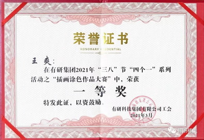 稀土金屬及合金事業部王爽、生產管理部馬紫荊分別獲得女職工插畫涂色比賽一等獎。王爽于2018年入職,2019年獲得有研稀土“優秀員工“榮譽稱號。馬紫荊于2019年入職,先后獲得有研稀土“優秀新人”“優秀員工”榮譽稱號。
