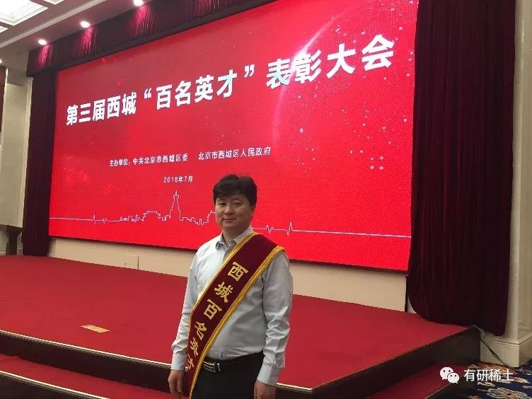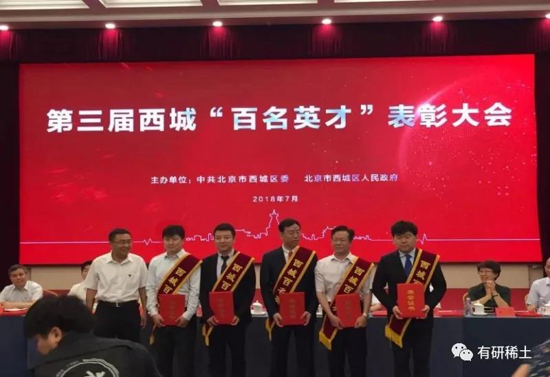 2018 年7月26日,第三屆西城區“百名英才”表彰大會隆重舉行。有研稀土總經理于敦波教授喜獲“百名英才”中的“杰出人才”榮譽稱號。這是繼2012年黃小衛教授獲得西城區首屆“百名英才”后,有研稀土第2位科技工作者獲得此殊榮。?