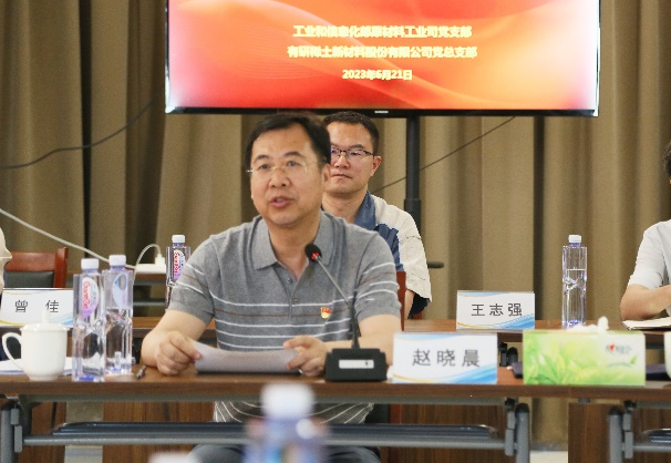 為深入學(xué)習(xí)貫徹習(xí)近平新時代中國特色社會主義思想和黨的二十大精神,全面落實習(xí)近平總書記關(guān)于推動稀土產(chǎn)業(yè)發(fā)展的重要指示精神,共謀稀土行業(yè)綠色可持續(xù)發(fā)展,6月21日,工業(yè)和信息化部原材料工業(yè)司黨支部聯(lián)合有研稀土新材料股份有限公司黨總支在燕郊基地開展“聯(lián)學(xué)聯(lián)建共奮進(jìn)、黨建引領(lǐng)促發(fā)展”活動。工信部原材料工業(yè)司司長陳克龍,副司長馮猛、張海登,中國有研黨委書記、董事長趙曉晨,首席科學(xué)家、中國工程院院士黃小衛(wèi),黨委委員、副總經(jīng)理周旗鋼出席活動。中國有研黨委副書記王興權(quán)主持活動。