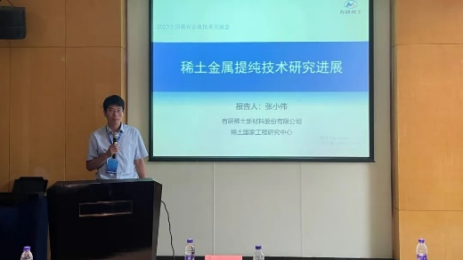 會議設置了稀有金屬綠色選礦、稀有金屬綠色冶金、稀土綠色冶金與材料制備、稀有金屬材料與加工、高純稀有金屬及靶材、稀有金屬固廢資源化與環(huán)境保護等六個專題的分會場。稀土國家工程研究中心、有研稀土新材料股份有限公司、雄安稀土功能材料創(chuàng)新中心10余名專家、學者、研究生參加了會議。有研稀土副總經(jīng)理馮宗玉擔任大會秘書長、稀土綠色冶金與材料制備分會場主席,副總經(jīng)理王志強擔任高純稀有金屬及靶材分會場主席,正高級工程師王猛擔任稀土綠色冶金與材料制備專題會場主持人,正高級工程師張小偉擔任高純稀有金屬及靶材專題會場主持人,王猛、張小偉、李錚分別作了題為“硫酸體系碳酸氫鎂皂化萃取分離稀土過程中鈣元素的定向遷移與調(diào)控”“稀土金屬提純技術研究進展”“離子型稀土礦硫酸鎂浸取過程鋁的賦存形態(tài)轉(zhuǎn)變機理研究”的分會邀請報告。