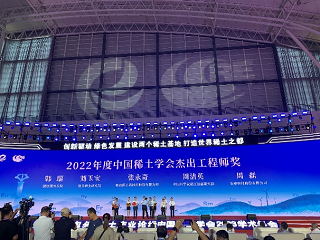 中國工程院院士干勇、王海舟分別作了題為《開創我國稀土技術創新和產業發展的新局面》 《質量基礎支撐全產業鏈高質量發展》的大會報告。會議頒發了2022年度稀土科學技術獎、2022年度中國稀土學會杰出工程師獎,其中,有研稀土與甘肅稀土等共同完成的“稀土濕法冶煉過程中鈣離子定向富集去除技術開發及產業化”項目獲得稀土科學技術一等獎,有研稀土張永奇正高級工程師榮獲2022年度中國稀土學會杰出工程師獎。