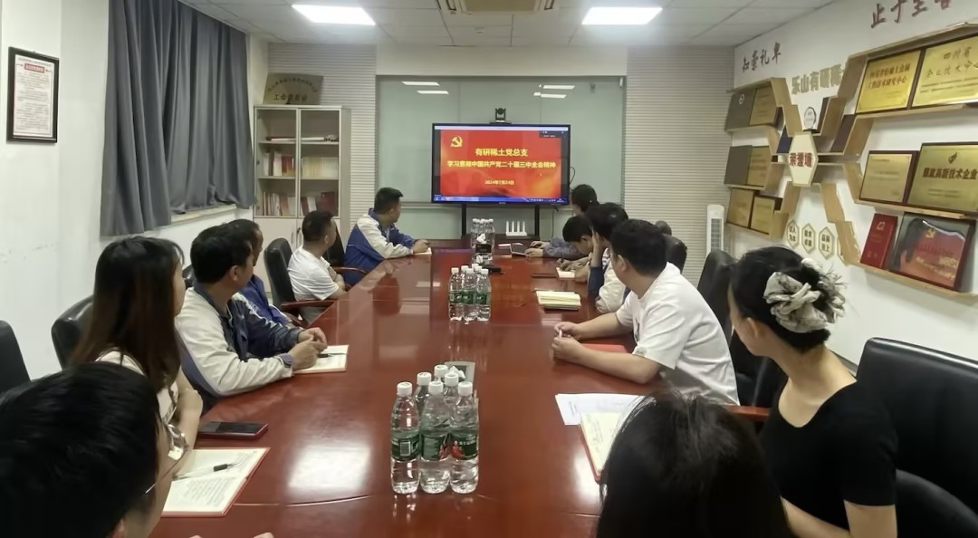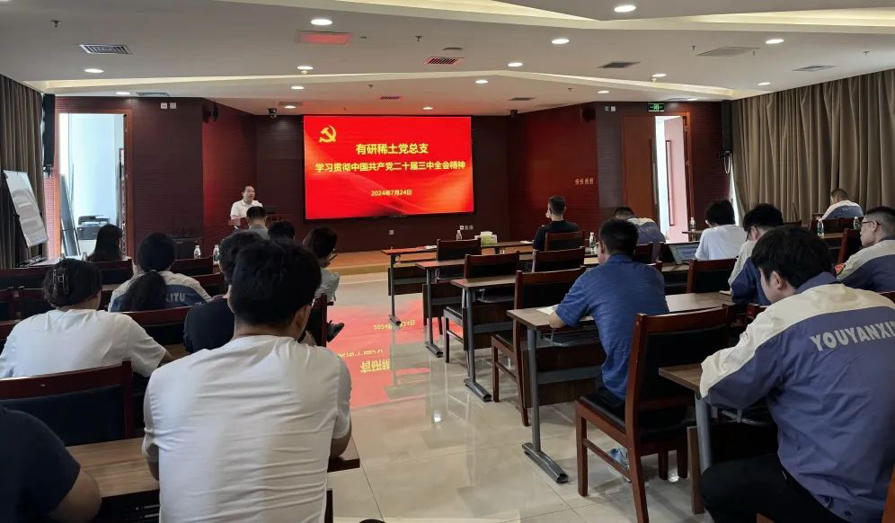 2024年7月24日,有研稀土黨總支召開(kāi)全體黨員大會(huì),傳達(dá)學(xué)習(xí)中國(guó)共產(chǎn)黨二十屆三中全會(huì)精神。黨總支委員、經(jīng)營(yíng)班子成員出席會(huì)議,所屬各黨支部(含樂(lè)山稀土、榮成稀土)黨員100余人通過(guò)線下、線上相結(jié)合的方式參加會(huì)議。黨總支副書記、副總經(jīng)理許國(guó)棟主持會(huì)議。
