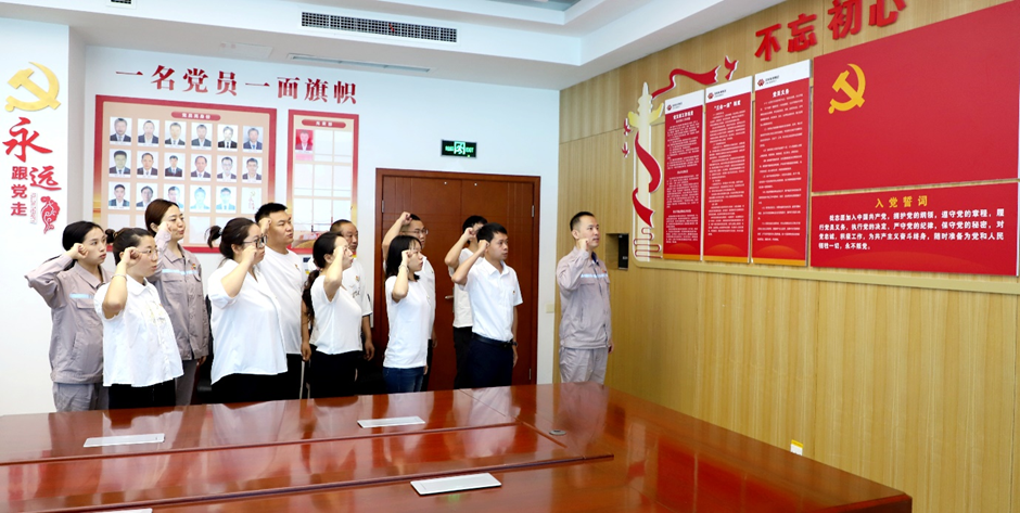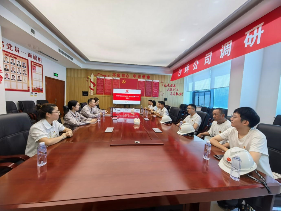 在會議室,國能大渡河沙坪發電有限公司黨群辦公室負責同志重點介紹了黨建引領業務發展的特色經驗,通過黨建與主題教育、群團工作、作風紀律建設相融合,將黨建工作融入工程建設、技術創新、團隊管理等各個環節,實現黨建與業務同頻共振。樂山稀土黨支部黨員干部深受啟發,雙方就如何創新黨建活動形式、提升黨員隊伍凝聚力、推動黨建與業務深度融合等問題展開討論。座談會結束后,與會全體黨員面向黨旗,莊嚴宣誓,重溫入黨誓詞,表達了對黨的堅定信念和為黨的事業奮斗終身的決心。