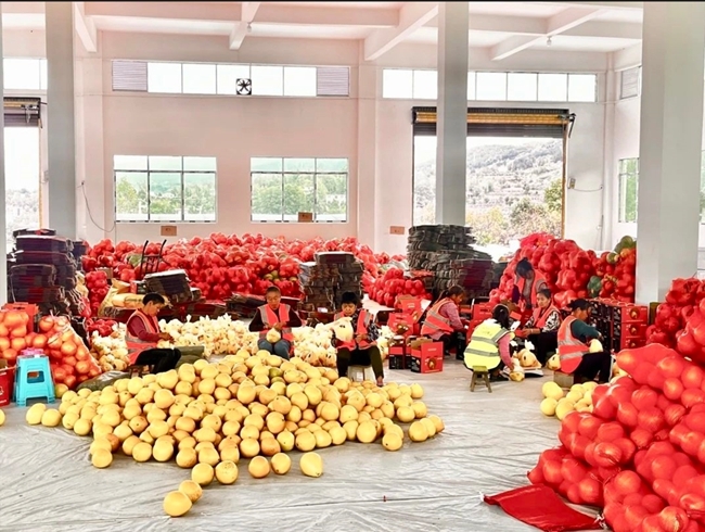 近年來,珠池壩村在當(dāng)?shù)卣С窒麓罅Πl(fā)展蜜柚產(chǎn)業(yè),種植了紅心蜜柚737畝、文旦柚100畝。2021年以來,中國有研聚焦定點(diǎn)幫扶珠池壩村的柚子產(chǎn)業(yè),投入幫扶資金建設(shè)了蜜柚倉儲中心、引水灌溉工程,提升了柚子產(chǎn)業(yè)基礎(chǔ)設(shè)施自動化、綠色化水平,指導(dǎo)珠池壩村柚子產(chǎn)業(yè)健康發(fā)展。