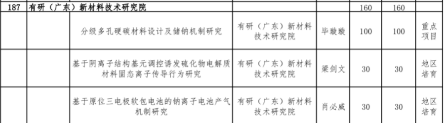 新年伊始,廣東省基礎與應用基礎研究基金省市聯合基金項目評審結果公布,有研廣東院共有3個項目獲批粵佛聯合基金,其中全固態電池領域1人獲批地區培育項目,鈉離子電池領域2人分別獲批重點項目和地區培育項目支持。